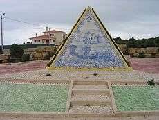 The pyramid at the entrance of Fontanelas, with typical Portuguese azulejos.