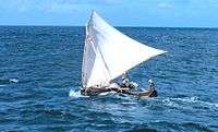 Micronesian proa with crab claw sail