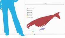 - ↑ Tegopelte gigas was 25 to 27 centimetres (9.8 to 10.6 in) long, and was one of the largest non-anomalocarids. Whittington, H.B. (September 1985). "Tegopelte gigas, a second soft-bodied trilobite from the Burgess Shale, Middle Cambrian, British Columbia". Journal of Paleontology. Paleontological Society. 59 (5): 1251–1274. JSTOR 1305016.; Gould, S.J. (1989). Wonderful life: the Burgess Shale and the nature of history. New York: W.W. Norton. p. 176. ISBN 0-393-02705-8.