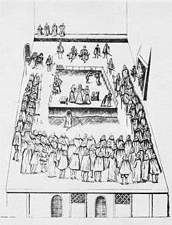 During the Second Barons' War, Fotheringhay and Chester Castle were taken by Robert de Ferrers, 6th Earl of Derby. He held them from 1264 to 1265.[17] Edward II granted Fotheringhay Castle to John of Brittany, Earl of Richmond. When John died in 1334, his granddaughter inherited Fotheringhay Castle, Mary de St Pol, the widowed countess of Pembroke. She died in 1377, and Edward III gave her property over to his son, Edmund Langley.[6] In 1385, he was made Duke of York by the king and Fotheringhay Castle became his principal seat. According to John Leland writing in 1540, Langley spent a great deal on Fotheringhay Castle.[18] Langley died in 1402 and was succeeded by his eldest son, Edward. He died without children of his own in 1415, so his property passed to his nephew Richard.[19]