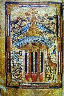 The Fountain of Life, or in its earlier form the Fountain of Living Waters, is a Christian iconography symbol associated with baptism and/or eucharist, first appearing in the 5th century in illuminated manuscripts and later in other art forms such as panel paintings.