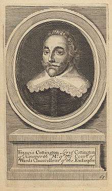 Francis Cottington, 1st Baron Cottington (ca. 1579 – 1652) was the English lord treasurer and ambassador and leader of the pro-Spanish, pro-Roman Catholic faction in the court of Charles I.