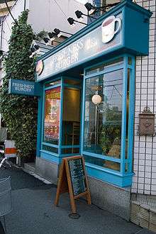 Freshness Burger, often referred to simply as Freshness, is a fast food restaurant from Japan. Founded in 1992, it sells hamburgers, sandwiches, salads, and coffee drinks. It advertises itself as "Fresh and Organic," operating under the slogan "Freshness Food, Freshness Serving, Freshness People, Freshness Planet," which is displayed in English. There are several vegetarian items on the menu. It presently operates 189 locations in Japan.
