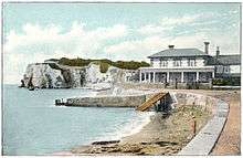 Freshwater is a large village and civil parish[2][3] at the western end of the Isle of Wight, England. Freshwater Bay is a small cove on the south coast of the Island which also gives its name to the nearby part of Freshwater.[4] Freshwater sits at the western end of the region known as the Back of the Wight or the West Wight which is a popular tourist area.[5]