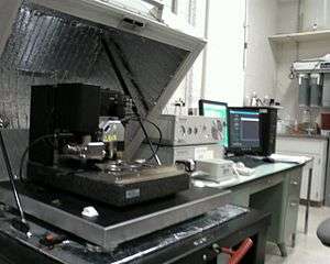 CFM has been primarily developed by Charles Lieber at Harvard University in 1994.[1] The method was demonstrated using hydrophobicity where polar molecules (e.g. COOH) tend to have the strongest binding to each other, followed by nonpolar (e.g. CH3-CH3) bonding, and a combination being the weakest. Probe tips are functionalized and substrates patterned with these molecules. All combinations of functionalization were tested, both by tip contact and removal as well as spatial mapping of substrates patterned with both moieties and observing the complementarity in image contrast. Both of these methods are discussed below. The AFM instrument used is similar to the one in Figure 1.