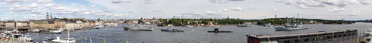 Ships on the Saltsjön, with Götheborg docked in the center, in Stockholm on the day of the wedding of Crown Princess Victoria of Sweden to Daniel Westling, 19 June 2010.