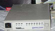 The Game.com (styled as "game.com" but pronounced "game com", not "game dot com") is a handheld game console released by Tiger Electronics in September 1997. It featured many new ideas for handheld consoles and was aimed at an older target audience, having PDA-style features, and functions such as a touchscreen and stylus.[2] A second version of the console was released as the Game.com Pocket Pro in September 1998,[2] followed by the Game.com Pocket. The first game.com console included two slots for game cartridges and could be connected to a 14.4 kbit/s modem.[2] The second and last revision reverted to a single cartridge slot.