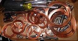 Spiral-wound gaskets comprise a mix of metallic and filler material.[4] Generally, the gasket has a metal (normally carbon rich or stainless steel) wound outwards in a circular spiral (other shapes are possible) with the filler material (generally a flexible graphite) wound in the same manner but starting from the opposing side. This results in alternating layers of filler and metal. The filler material in these gaskets acts as the sealing element, with the metal providing structural support.