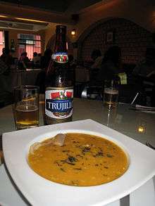 Some of the dishes in the festival are theologian soup, pepián of turkey, alfajores, ceviche, shambar, etc.[5] In the festival are presented musical shows as Bareto and Grupo 5 and also are presented typical dances like marinera and tondero.[6] Among cultural expressions presented to the public are also the stands with exhibits of chullos, beads, bracelets and huacos.