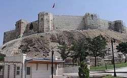 Gaziantep Castle, is a castle first built by the Hittite Empire as an observation point and later built into a main castle by the Roman Empire on top of a hill in the center of Gaziantep, Turkey in 2nd and 3rd century AD.[1] It underwent further expansion and renovation under Emperor Justinianus between 527 and 565 AD.[1] The circumference of the round shaped castle is 1200 meters. The walls are built of stone and the castle consists of 12 towers.