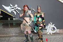 A recurrent representation of women in fantasy settings, originating in the 1960s, is the female warrior dressed in scanty armor.[47] They feature armor designs which have been described by such terms as "chainmail bikinis", largely consisting of small decorative plaques that reveal large portions of the body to the weather and expose vital organs, making them ineffective as protection.[48] The prevalence of this portrayal is presented as an instance of the common sexualization of women in the geek culture including video games, comic and movies.[42] In reaction to this, the art blog "Women Fighters in Reasonable Armor"[49] compiles depictions of women fighters wearing "realistic" armor.[50]