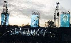 The Turn It On Again Tour featured a stage designed by architect Mark Fisher with a lighting display by Patrick Woodroffe, included a 55-metre long LED backdrop formed of 9 million LED lights.[201] The European leg saw close to 400,000 tickets sold in 40 minutes for shows in Germany and the Netherlands.[202] On 7 July, the band played at the Live Earth concert in London at Wembley Stadium.[203] The European leg ended with a free concert on 14 July at the Circus Maximus in Rome in front of around half a million people.[204][205] It was filmed for DVD that was released the following year as When in Rome 2007. A live album formed of recordings from various European dates was released in 2007 as Live over Europe 2007.[206]