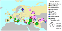 - ↑ Rosser, ZH; Zerjal, T; Hurles, ME; et al. (December 2000). "Figure 5: Y-Chromosomal Diversity in Europe Is Clinal and Influenced Primarily by Geography, Rather than by Language". The American Journal of Human Genetics. 67: 1526–43. doi:10.1086/316890. PMC 1287948