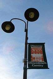 Gentry is a city in Benton County, Arkansas, United States. The population was 3,158 at the 2010 census.[1] The city was founded in the Ozark Mountains in 1894 along what would become the Kansas City Southern Railroad. The city's prior prosperity in the orchard industry, especially apples, was further strengthened by the rail connection. Following the decline of the apple industry in the 1930s, Gentry shifted its economy towards poultry along with many other areas of northwest Arkansas.[2] Today, Gentry is located within the Fayetteville-Springdale-Rogers Metropolitan Area. Gentry is known for the Wild Wilderness Drive-Through Safari, located 2 miles (3 km) north of the city limits.