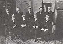 A photograph of the Mint engravers. Morgan is seated in the front row, second from right. | |