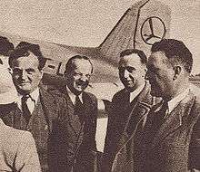 Georges Sadoul (on the left), French government official Dieterle, Fourre Cormeray and director Jean Grémillon (on the right) at the Okęcie airport in Warsaw