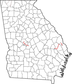 Initially the Georgia Midland operated three branch lines, all within Georgia, connecting Roberta through Fort Valley to Perry, Dover through Statesboro to Metter, and Ardmore to Sylvania.[7] Subsequently the Ardmore-Sylvania line was returned to Ogeechee Railway, which now operates it.