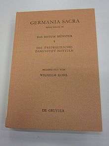 - Irene Crusius: Die Germania Sacra. Stand und Perspektiven eines langfristigen Forschungsprojekts. In: Deutsches Archiv für Erforschung des Mittelalters. Vol. 52, 1996, pp. 629–642.