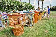 This program bridges art and environmental responsibility to bring new attention to the practice of recycling. Artists redesign empty recycling bins in order to inspire event goers to not only recycle, but to also take ownership in the larger concept of activism. The redesigned bins create eye-catching works that Global Inheritance brings to events across the country, such as Coachella, which has supported the program since 2004. The festival has showcased over a thousand recycling bins over the last eight years, each one an original piece created by artists from around the world.[4] Past artists have included Hunter S. Thompson, Blink-182 and Fugazi.[5] Each year, Global Inheritance donates the decorated bins to local schools, enabling their message to reach an even wider audience and inspire the next generation of activists.