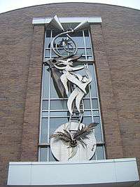Glory is a sculpture created by American artist Garry R. Bibbs in 1999. The sculpture resides on the corner of West Michigan Street in Indianapolis, Indiana. Glory is made from fabricated steel and bronze. Angels and trumpets are the two distinct images visible within the sculpture. The sculpture is very large, with dimensions of 80 ft x 40 ft x 1 ft, and it sits at the entrance to the J. F. Miller Center. Gibbs signed his name to the sculpture and included a copyright sign.