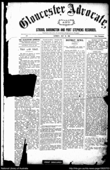 - ↑ "The Gloucester advocate [microform]". Catalogue. State Library of NSW. Retrieved 10 March 2014.