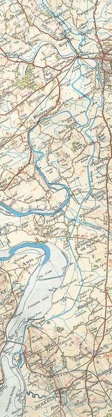 Conceived in the Canal Mania period of the late 18th century, the Gloucester and Berkeley Ship Canal scheme (as it was originally named) was started by architect and civil engineer Robert Mylne. In 1793 an Act of Parliament was obtained authorising the raising of a total of £200,000.[2] The project rapidly encountered financial difficulties - to such an extent that Mylne left the project in 1798. By half way through 1799 costs had reached £112,000 but only 5½ miles of the canal had been completed.[3] Robert Mylne's role was taken over by James Dadford who had originally been engaged as resident engineer on the project in 1795.[4] Lack of funds resulted in the company ceasing to employ Dadford in 1800.[3]