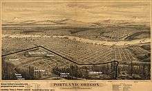 Goose Hollow is a neighborhood in southwest Portland, Oregon, United States. It acquired its distinctive name through early residents' practice of letting their geese run free in Tanner Creek Gulch and near the wooded ravine in the Tualatin Mountains known as the Tanner Creek Canyon.[2] Tanner Creek Gulch was a 20-block-long, 50-foot-deep (15 m) gulch (or hollow) that started around SW 17th and Jefferson and carried the waters of Tanner Creek into Couch Lake (now the site of Old Town/Chinatown and the Pearl District). Over a century ago, Tanner Creek was buried 50 feet (15 m) underground (where it still drains the West Hills), and the Tanner Creek Gulch was infilled.[3] Thus, the only remaining part of the hollow is the ravine (Tanner Creek Canyon) carved out by Tanner Creek through which Highway 26 passes and which the Vista Bridge spans (also called the Vista Viaduct).[4]
