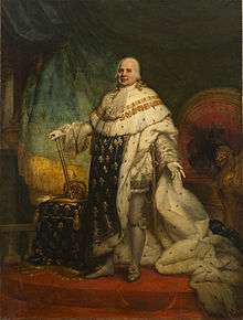 King Louis XVIII made a triumphal return to Paris on 3 May 1814, accompanied by members of the provisional council of state, commissaires of the ministerial departments, marshals of France and Generals. He was greeted by a huge crowd.[1] He named the new ministry on 13 May 1814.[2]