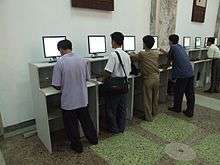 The library has numerous spacious computer rooms with modern computers providing access to the North Korean intranet. Computer education is compulsory in North Korea and computer science "has become the most popular area of study, besides the Juche, for military officers and university students. It is a sign of prestige if one has a computer-related job. Librarianship, therefore, is a high-status profession since it requires computers and computer literacy to develop and maintain the electronic catalogues and digital collections. For those North Koreans who do not have computer-related jobs, accessing computers at the library...gives them the opportunity to join those of higher ranks."[3]