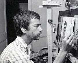 Gillespie with self-portrait in his Rome studio c. 1969 | |