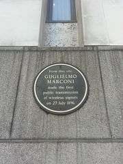 - ↑ "Pioneer: Guglielmo Marconi". radiohof.org. Retrieved 30 May 2012.