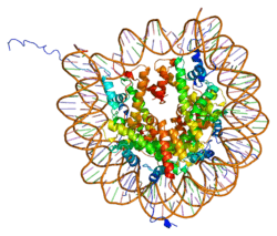 - ↑ Marzluff WF, Gongidi P, Woods KR, Jin J, Maltais LJ (Oct 2002). "The human and mouse replication-dependent histone genes". Genomics. 80 (5): 487–498. doi:10.1016/S0888-7543(02)96850-3. PMID 12408966.