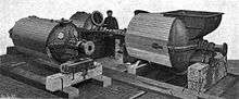The turbines, supplied by Parsons, drove four shafts, with two propellers per shaft. The outer shafts were driven by high pressure turbines and the inner shafts by low pressure turbines, while the inner pair also was fitted with separate turbines for running astern. No cruising engines were fitted. Four Yarrow boilers fed the turbines, the uptakes from which were routed to three funnels.[4][5][6] The ship had a contract speed of 31 knots (57 km/h; 36 mph), although Parsons expected the ship to reach speeds of at least 34 knots (63 km/h; 39 mph).[3]