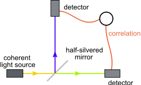 a constant plus a phase dependent component. Most modern schemes actually measure the correlation in intensity fluctuations at the two detectors, but it is not too difficult to see that if the intensities are correlated then the fluctuations , where is the average intensity, ought to be correlated. In general