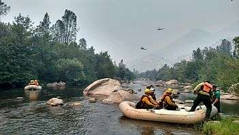 Firefighters cross the Kern River in California on their way to work.