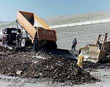 The weapons production reactors were decommissioned at the end of the Cold War, and decades of manufacturing left behind 53 million US gallons (200,000 m3) of high-level radioactive waste[4] stored within 177 storage tanks, an additional 25 million cubic feet (710,000 m3) of solid radioactive waste, and 200 square miles (520 km2) of contaminated groundwater beneath the site.[5] In 2011, DOE emptied 149 single-shell tanks by pumping nearly all of the liquid waste out into 28 newer double-shell tanks. DOE later found water intruding into at least 14 single-shell tanks and that one of them had been leaking about 640 US gallons (2,400 l; 530 imp gal) per year into the ground since about 2010. In 2012, DOE discovered a leak also from a double-shell tank caused by construction flaws and corrosion in the bottom, and that 12 double-shell tanks have similar construction flaws. Since then, DOE changed to monitoring single-shell tanks monthly and double-shell tanks every 3 years, and also changed monitoring methods. In March 2014, DOE announced further delays in the construction of the Waste Treatment Plant, which will affect the schedule for removing waste from the tanks.[6] Intermittent discoveries of undocumented contamination have slowed the pace and raised the cost of cleanup.[7]
