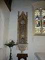 To the north of the high altar there is a niche which may have held a figure of St. Thomas. Traces of a 14C painting therein have been obscured by a 15C one.[14] There is also a niche for a figure in the Lady chapel, recently (c.1999) filled by a statue of Our Lady of Walsingham.[15] Against the western wall of the lady chapel is an 14th-century oak muniment chest, the front of which is carved with a representation of a joust. In 1987 it was stolen and recovered from Phillips auction rooms. To protect it, the lady chapel arch is filled with an iron screen. It was during the installation of this screen that the shallow trench referred to above was dug.[15]