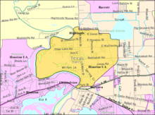 Highlands is a census-designated place (CDP) located along the Union Pacific Railroad, north of Interstate 10 and west of Farm to Market Road 2100, in an industrialized area of unincorporated Harris County, Texas, United States.[3] The population was 7,522 at the 2010 census.[4]