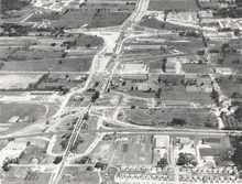 Construction of the Toronto Bypass began near Yonge Street in 1949 (along present-day Highway 401) and on the four-laning of Highway 27 in 1953.[11][12] The Highway 27 work involved the construction of two interchanges: a three-way stack at Highway 401 and a large cloverleaf at the QEW, the latter of which would become one of the worst bottlenecks in the province a decade after its completion, according to Minister of Transportation Charles MacNaughton.[13] By September 1956, it was possible to bypass Toronto entirely on the four lane divided highway composed of Highway 401 and Highway 27.[14][15] Highway 401 was extended to the west soon after,[16] but Highway 27 remained a two lane highway north of it.[17]
