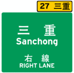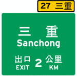 Exit notification signs were slightly altered in December 2005. The green exit mileage label on top of the exit notification sign has been replaced with a yellow exit mileage label accompanied with the Chinese code name of the interchange. The Chinese code name of the interchange does not necessarily reflect the destinations listed on the exit signs and may represent the general location of the freeway interchange.
