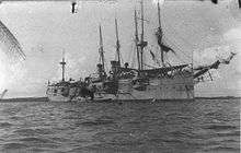 Private Silva joined the Marines on September 12, 1899, in San Francisco. In 1900, he was a member of the 1st Regiment (Marines) under the command of Major Littleton Waller, aboard the USS Newark (C-1).[18] On May 20, 1900, the USS Newark (C-1), a United States Navy protected cruiser and the first modern cruiser in the U.S. fleet, sailed for China to help land reinforcements to relieve the legations under siege by the Boxers at Peking in what is known as the Boxer Rebellion. The Newark arrived at Tientsin on May, 22. On May, 31, Captain John T. Myers, USMC, arrived in Peking in overall command of two ship detachments of U.S. Marines. This newly formed Legation Guard consisted of twenty-five Marines from the USS Oregon (BB-3) along with twenty-three Marines and five sailors from the USS Newark. Private Silva was one of the Newark Marines who were a part of the Legation Guard.[19]