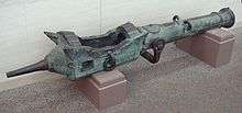 In Goa, Albuquerque started the first Portuguese mint in the East, after complaints from merchants and Timoja about the scarcity of currency. He used it as an opportunity to announce the territorial conquest by the design of the new coins.[41] The new coin, based on the existing local coins, bore a cross on one side and the design of an armillary sphere (or esfera), King Manuel's badge, on the reverse. Gold, silver and bronze coins were issued: gold cruzados or manueis, esperas and alf-esperas, and leais.[42][43] More mints were built in Malacca in 1511.