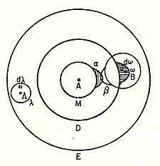 Ludwig Boltzmann's diagram of the I2 molecule proposed in 1898 showing the atomic "sensitive region" (α, β) of overlap.