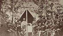 Although Boston was an important center of abolitionism, most Irish immigrants were indifferent to the movement, or condoned slavery. Adjusting to life in a strange country, living in poverty and facing discrimination, they were too preoccupied with their own struggle to have much sympathy for the plight of other ethnic groups.[28] Nevertheless, many fought for the Union during the Civil War, including Colonel Thomas Cass, who commanded an Irish regiment, the Fighting Ninth; General George F. McGinnis, who led troops at Shiloh and Vicksburg; and Patrick Robert Guiney, who fought in over thirty engagements. Sister Mary Anthony O'Connell served as a nurse on the front lines, where she was known as the "Angel of the Battlefield". Irish Bostonians also contributed to the war effort by working in the Watertown arsenal and the iron foundries of South Boston, or in the shipyards, building warships for the navy. There was some resistance to the draft in 1863, but nothing like the New York City draft riots.[29]