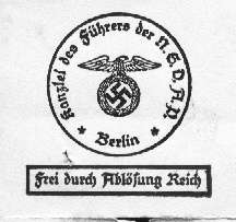 The Chancellery established in 1934 in Berlin as a separate agency which was parallel to the German Reich Chancellery under Hans Heinrich Lammers and the Nazi Party Chancellery (until 1941: "Staff of the Deputy Führer") in Munich, led by Martin Bormann.[1] The Kanzlei des Führers was headed by SS-Obergruppenführer Philipp Bouhler bearing the title of Der Chef der Kanzlei des Führers der NSDAP.[2] As chief of the KdF, Bouhler also held the rank of a Nazi Reichsleiter. He was appointed as chief on 17 November 1934 and held that position until 23 April 1945;[3] though largely disempowered from 1942 onwards in favour of Bormann. In 1939 the KdF moved its seat to the New Reich Chancellery building on Voßstraße No. 4.