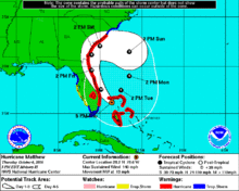 - ↑ McNoldy, Brian; Fritz, Angela; Samenow, Jason (October 4, 2016). "Hurricane warning in Florida after Matthew strikes Haiti as strongest hurricane in 52 years". The Washington Post. Retrieved October 6, 2016.