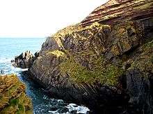 On a trip to the Isle of Arran in 1787 he found his first example of an unconformity to the north of Newton Point near Lochranza, but the limited view did not give the information he needed.[4][5] It occurs where vertically oriented Precambrian Dalradian schists are overlain by more recent cornstones in the Kinnesswood Formation of the Inverclyde Group (Lower Carboniferous), with an obvious difference in dip between the two rock layers,[6][7] but he incorrectly thought that the strata were conformable at a depth below the exposed outcrop.[8]