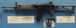 The Galil is a family of Israeli small arms designed by Yisrael Galil and Yaacov Lior in the late 1960s and produced by Israel Military Industries Ltd (now Israel Weapon Industries Ltd) of Ramat HaSharon. The rifle design borrows heavily from the RK-62 and has a modified gas diversion system similar to the RK-62 to reduce the recoil of the rifle making it easier to fire especially in automatic mode.[2] The weapon system consists of a line chambered for the intermediate 5.56×45mm NATO caliber with either the M193 or SS109 ball cartridge and several models designed for use with the 7.62×51mm NATO rifle round. It is named after one of its inventors, Yisrael Galil. The Galil series of weapons is in use with military and police forces in over 25 countries.
