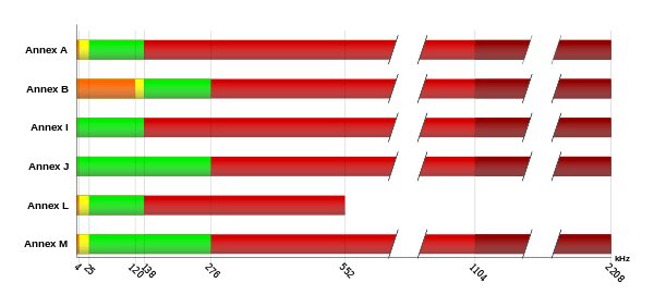 frequency plan for common ADSL standards and annexes