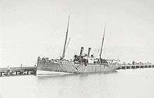 The next significant change to the company's fleet came in 1878 with the purchase of the Illawarra (II). At 533 tons and 190 feet in length, she handled both passengers and cargo for the company, and proved to be "most popular" until being laid up in 1908 and eventually scrapped.[19][22] Illawarra (II) was soon joined by Allowrie, a 504-ton vessel built in 1880 for carrying passengers and cargo, including livestock and dairy produce. (Allowrie remained in service with the Illawarra Steam Navigation Company until 1909, when, like Illawarra (II), she was laid up). The third major vessel during this period was Kameruka.[19] A 515-ton steamer, she was built in 1880, but was then lost when wrecked on Pedro Reef off Moruya in October, 1897.[25]